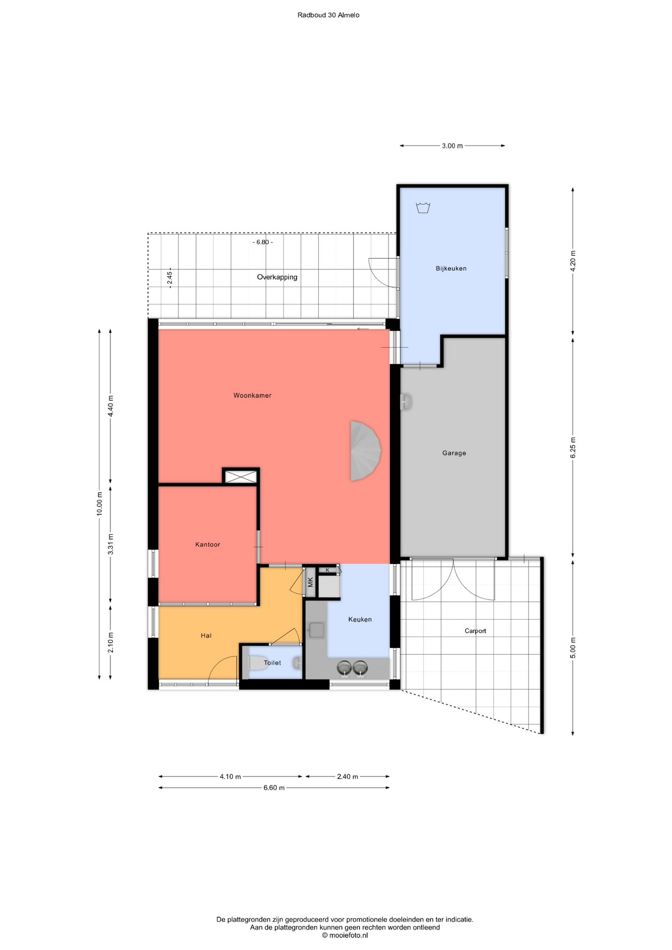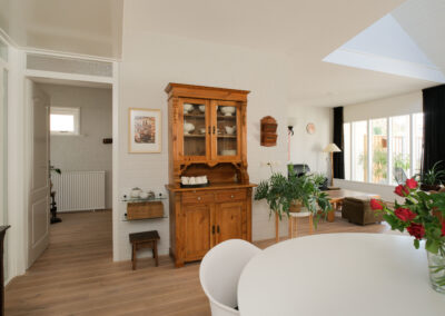 Indeling: entree, hal, meterkast, toilet met fonteintje, kantoor/studeerkamer, keuken met gaskookplaat, afzuigkap, koelkast, oven en vaatwasser, ruime lichte woonkamer voorzien van houten vloer, bijkeuken en garage met carport.